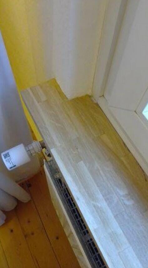 Dans cet exemple, des Easy-Sticks ont été collés sur un ancien rebord de fenêtre. Le rebord de la fenêtre a l'air confortable et ultra-moderne avec les Easy-Sticks